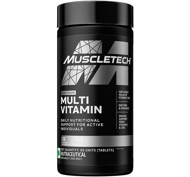 HIGH-PERFORMANCE DAILY MULTIVITAMIN Platinum Multivitamin is a complete, advanced multivitamin complex designed for elite athletes and active individuals for general health requirements for vitamins A, C, E, B6 and B12HERBAL & AMINO SUPPORT MATRIX - Daily nutritional support ingredients, including Amino Support Matrix and 240mg Herbal MatrixIMMUNE SUPPORT - Contains Vitamin C for Immune SupportMuscleTech was born out of an obsession to redefine the limits of science and human potential. With their commitment to research, development and innovation, they've been globally recognized as one of the leading sports nutrition brands in the industry and continue to be one of America's elite names for redefining performance through cutting-edge products and high-quality ingredients. Backed by America's #1 selling sports supplement company, and with distribution in over 140 countries, MuscleTech has emerged as one of the most recognized sports nutrition brands worldwide.